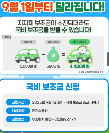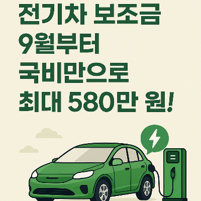 전기차 보조금, 9월부터 국비만으로도 최대 580만 원 지원됩니다