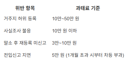 → 무단 전입 상태로 과태료 부과 가능 - 실제 거주하지 않는 주소로 주민등록 유지
