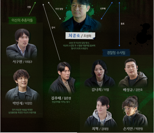 - 장동윤 → 차수열(형사) : 엄마가 살인마라는 사실로 내적 갈등에 휘말린 주인공
