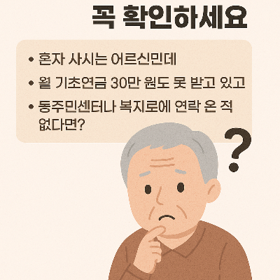 | 저소득 독거노인 | 중위소득 40% 이하 + 혼자 사는 분 |