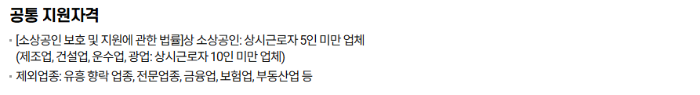 - 업종 기준: 도소매, 음식, 숙박, 제조업 등 소상공인 범위 내 해당