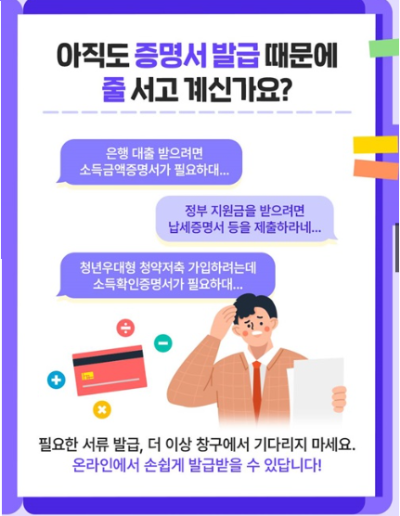 필요한 서류가 있어 공공기관이나 은행을 찾았던 기억, 누구에게나 있을 겁니다. 소득을 증명하라거나 납세 내역을 보여달라거나… 창구에서 줄 서고, 기다리고, 서류를 뽑느라 시간을 허비했던 날들.