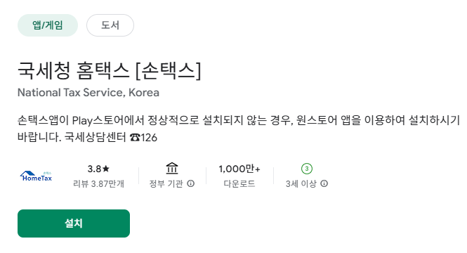 모바일에서도 가능합니다. 국세청 모바일 앱 ‘손택스’를 설치해 보세요.