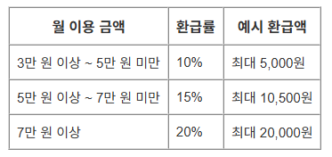 k패스 카드 신청방법 및 혜택 안내를 살펴보면, 환급 구조를 이해하는 것이 중요합니다. 월 이용 금액 구간에 따라 환급률이 달라집니다.