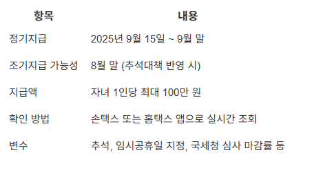 📆 2025년 자녀장려금 지급시기, 추석이 변수다