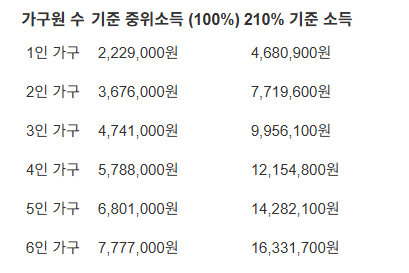 이번 글에서는 2025년 최신 기준 중위소득 210% 수치를 기준으로