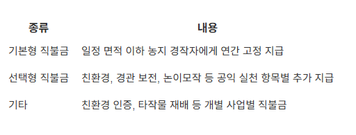 국민 전체를 위한 공익적 농업 활동에 대한 보상 제도입니다.