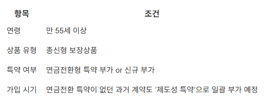 - 대상자: 과거 종신형 보장상품 가입자 중 연금전환 특약 가능 계약